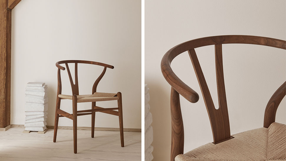 Der Wishbone Chair CH24 von Hans J. Wegner ist ein echtes Meisterstück des skandinavischen Möbeldesigns. Seit 1950 wird er in aufwendiger Handarbeit vom dänischen Traditionsunternehmen Carl Hansen & Søn gefertigt.