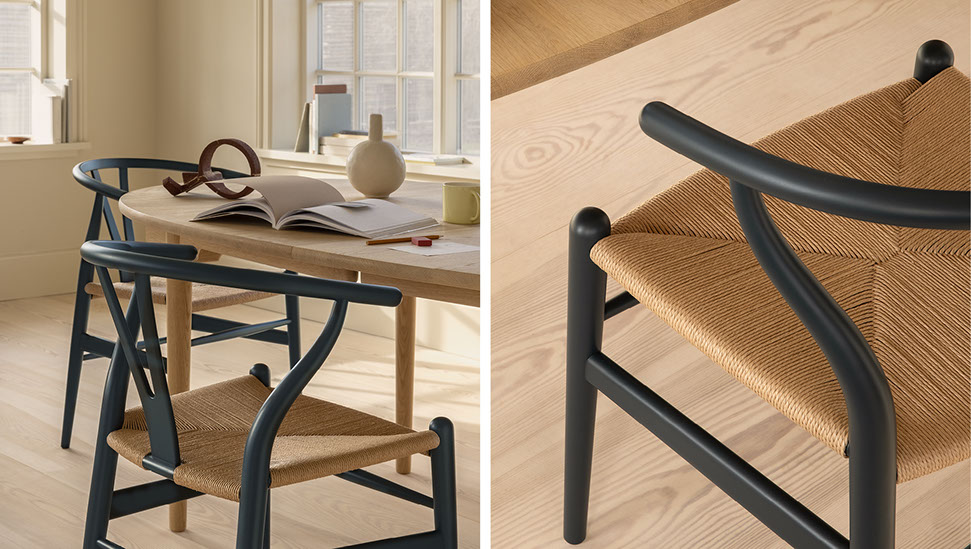 Jeder Wishbone Chair besteht aus 14 präzise gefertigten Holzteilen und einer von Hand geflochtenen Sitzfläche aus Papierkordel. Über 100 Arbeitsschritte, größtenteils in Handarbeit, machen jeden Stuhl zu einem Unikat. Die zeitlose, organische Formensprache macht den Wishbone Chair vielseitig einsetzbar. In verschiedenen Holzarten, Buche lackiert und mit schwarzer oder naturfarbener Kordel erhältlich, lässt er sich vielen individuellen Vorlieben anpassen. Der Wishbone Chair steht für skandinavische Handwerkskunst und Designkultur.