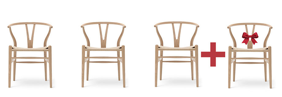 Kaufen Sie jetzt drei Wishbone Chairs CH24 und erhalten Sie den vierten gratis dazu. Exklusiv bei Ventana.