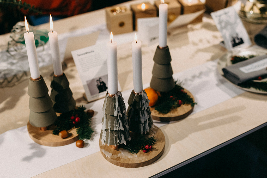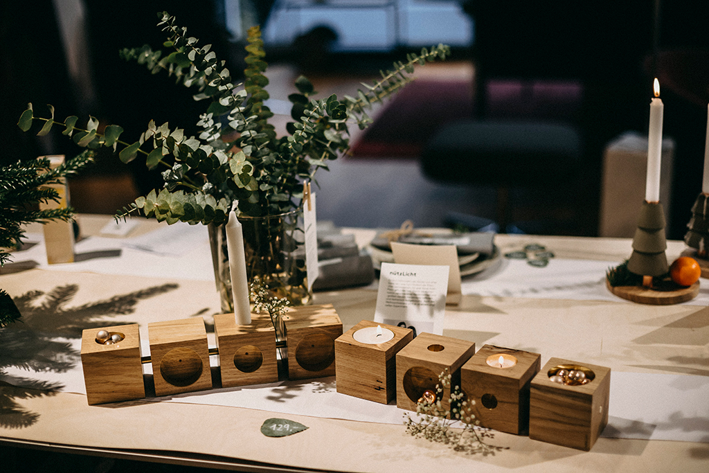 Der Budenzauber ist ein Entwurfsprojekt der MSD. Innerhalb eines sechswöchigen Produktdesign-Kurses entwickeln und produzieren Studierende unter Anleitung von Prof. Steffen Schulz Adventsprodukte in limitierten Kleinserien. Mit reduzierter Formensprache sollen diese eine Alternative zu den typischen Weihnachtsartikeln darstellen. Von der Idee über das Produkt und die Serienfertigung bis hin zur Vermarktung bildet das Projekt unter realistischen Bedingungen den gesamten Prozess erfolgreichen Produktdesigns ab.