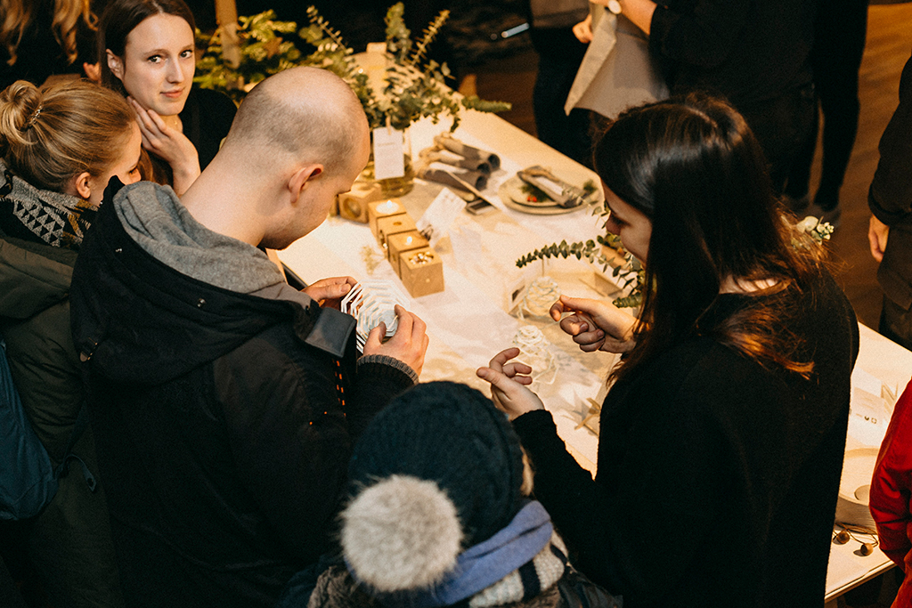 Abschluss und Höhepunkt des Kurses ist immer der erste Samstag im Advent, an dem die Studierenden ihre Produkte bei Ventana präsentieren und verkaufen. Die Kooperation zwischen FH und Ventana ist ein echter Gewinn für alle Seiten: Die Studierenden, Ventana und nicht zuletzt die Besucher. Sie können sich über die Arbeit angehender Entwerfer informieren und haben die einmalige Möglichkeit, ein etwas anderes Weihnachtsprodukt zu erwerben.