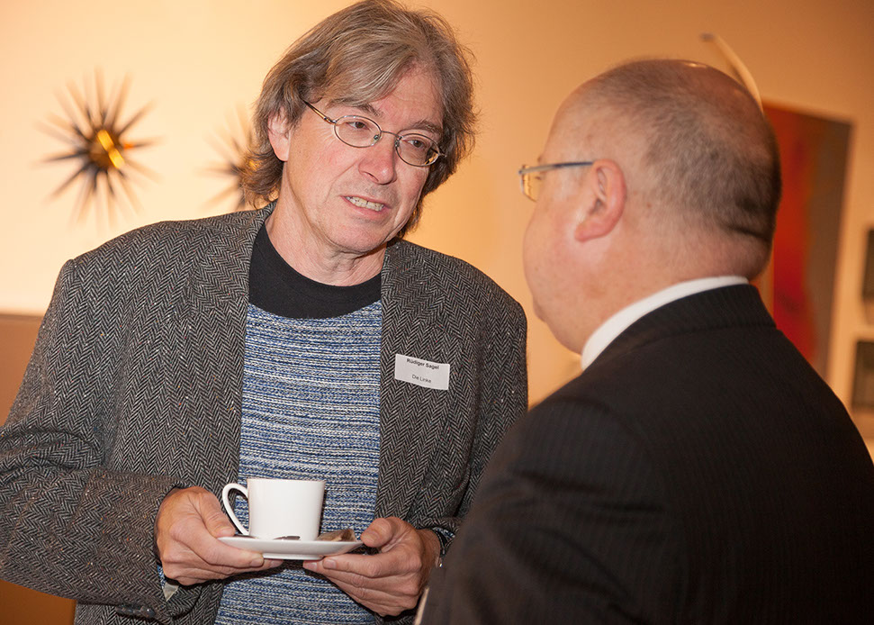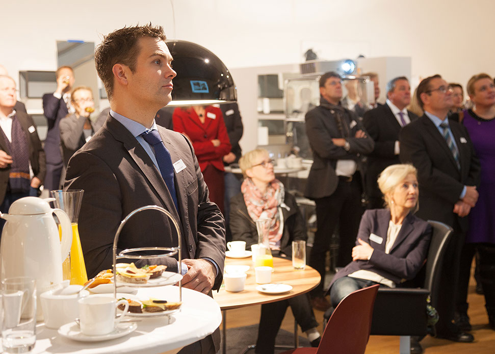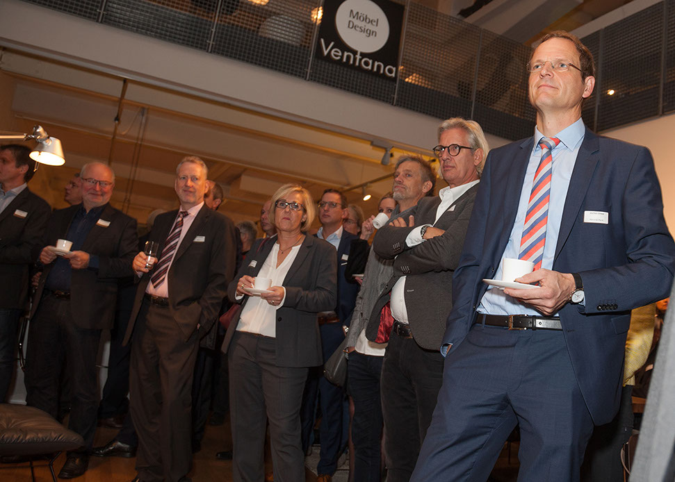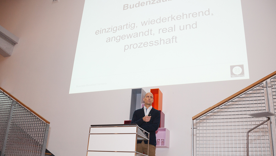 Zu morgendlicher Stunde trafen sich Vertreter der hiesigen Wirtschafts- und Handelswelt bei Ventana zum Business Breakfast der Wirtschaftsförderung Münster (WFM). Das Thema des Vortrages von Josef Liesner und Professor Steffen Schulz von der Münster School of Design der FH Münster (MSD) war das gemeinsame Projekt „Budenzauber“. Erläutert wurden die Mehrwerte, die sich für beide Seiten aus dieser Kooperation ergeben.